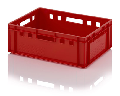 A hygienic transport and storage of meat and sausage products: The meat boxes Spirowind in the E2 format are DIN 55423-conform and meet the strict requirements of the EHI.