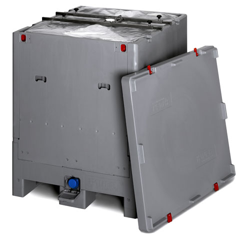The new IBC has a considerable cost advantage in comparison to conventional systems due to the collapsible construction and the changeable liner bags.